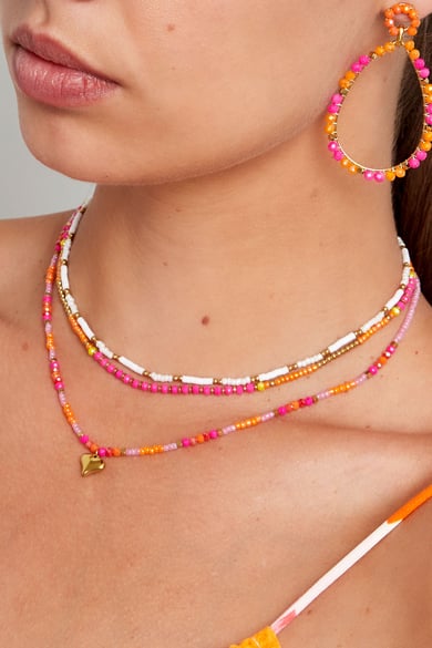Wow! Was für ein Bild diese wunderschöne bunte Perlenkette ist. Die Halskette mit schönen Perlen in den Farben Gelb und Orange lässt sich hervorragend mit allen Arten von Gold- und Silberschmuck kombinieren und kann auch mit anderen farbenfrohen Schmuckstücken kombiniert werden. Auf diese Weise können Sie diese Halskette unbegrenzt kombinieren! Die Halskette besteht aus Glasperlen, Polymerton, Hämatit und Edelstahl. Die Halskette hat eine Größe von 38 cm, verstellbar bis 43 cm. Erhältlich in den Farben Grün/Blau - Pink/Orange - Weiß/Gold - Gelb/Orange.